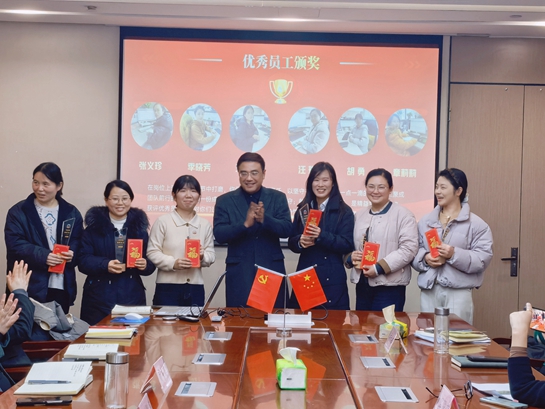 最后,會(huì)議進(jìn)入優(yōu)秀員工表彰頒獎(jiǎng)環(huán)節(jié)。為表彰先進(jìn)、樹立榜樣,激勵(lì)全體員工奮勇爭(zhēng)先,彰顯公司對(duì)優(yōu)秀員工的認(rèn)可與鼓勵(lì),公司對(duì)2025年度在崗位上履職盡責(zé)、表現(xiàn)突出的優(yōu)秀員工進(jìn)行了表彰。頒獎(jiǎng)現(xiàn)場(chǎng)氛圍熱烈,左總依次為優(yōu)秀員工頒發(fā)榮譽(yù)獎(jiǎng)杯,向他們致以最誠摯的祝賀,高度肯定了他們一年來在本職崗位上的辛勤付出,同時(shí)號(hào)召全體員工以優(yōu)秀為標(biāo)桿、向先進(jìn)看齊,凝心聚力、攜手共進(jìn),共同推動(dòng)公司高質(zhì)量發(fā)展。