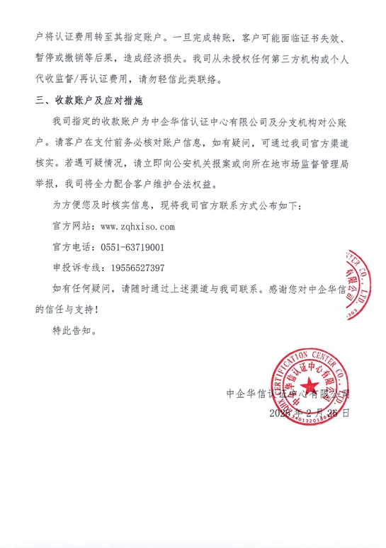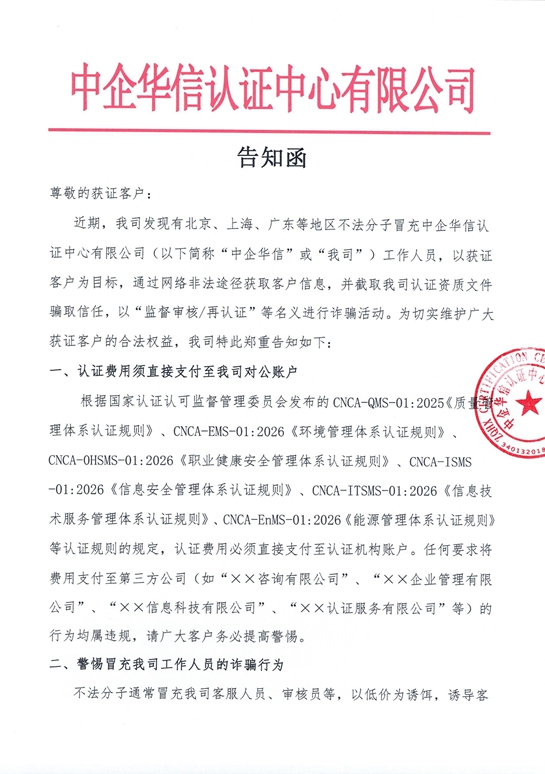 【緊急通知】關于警惕“冒充我司工作人員詐騙行為”的告知函